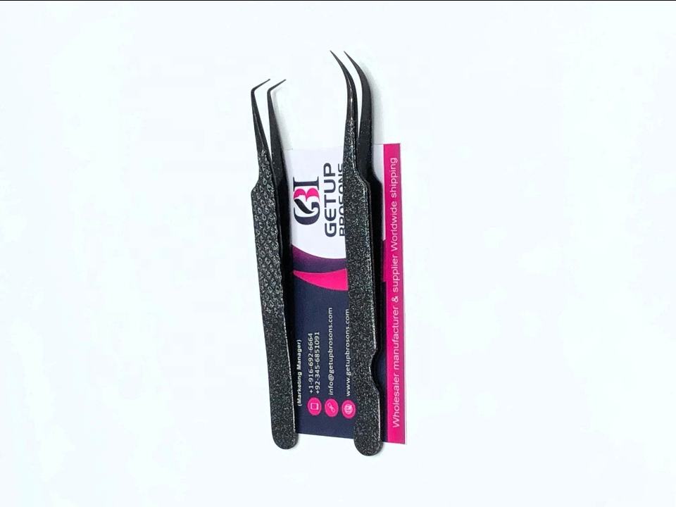 Pince à épiler professionnelle GETUP BROSONS IMPEX, nouvelle, durable, de haute qualité, à pointe lisse, avec grip diamanté à paillettes plasma à 90 degrés
