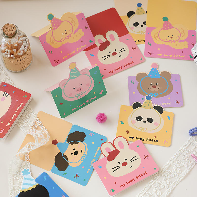 GF Cartoon Animaux mignons Impression Cartes d'invitation de joyeux anniversaire pour enfants Cartes de message de bénédiction pour enfants Cartes de vœux pliantes