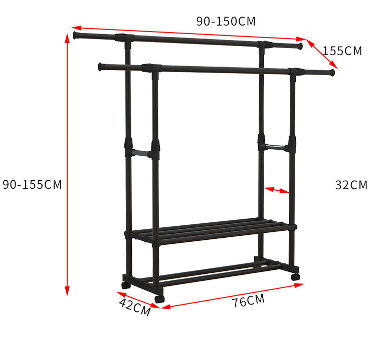 GG23 Acier inoxydable Cintre unipolaire chambre à coucher salon Fplding Racks Stretch vêtements chapeau cintre support avec étagère à chaussures