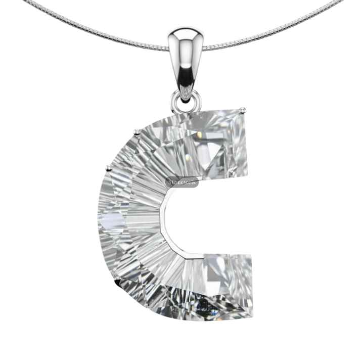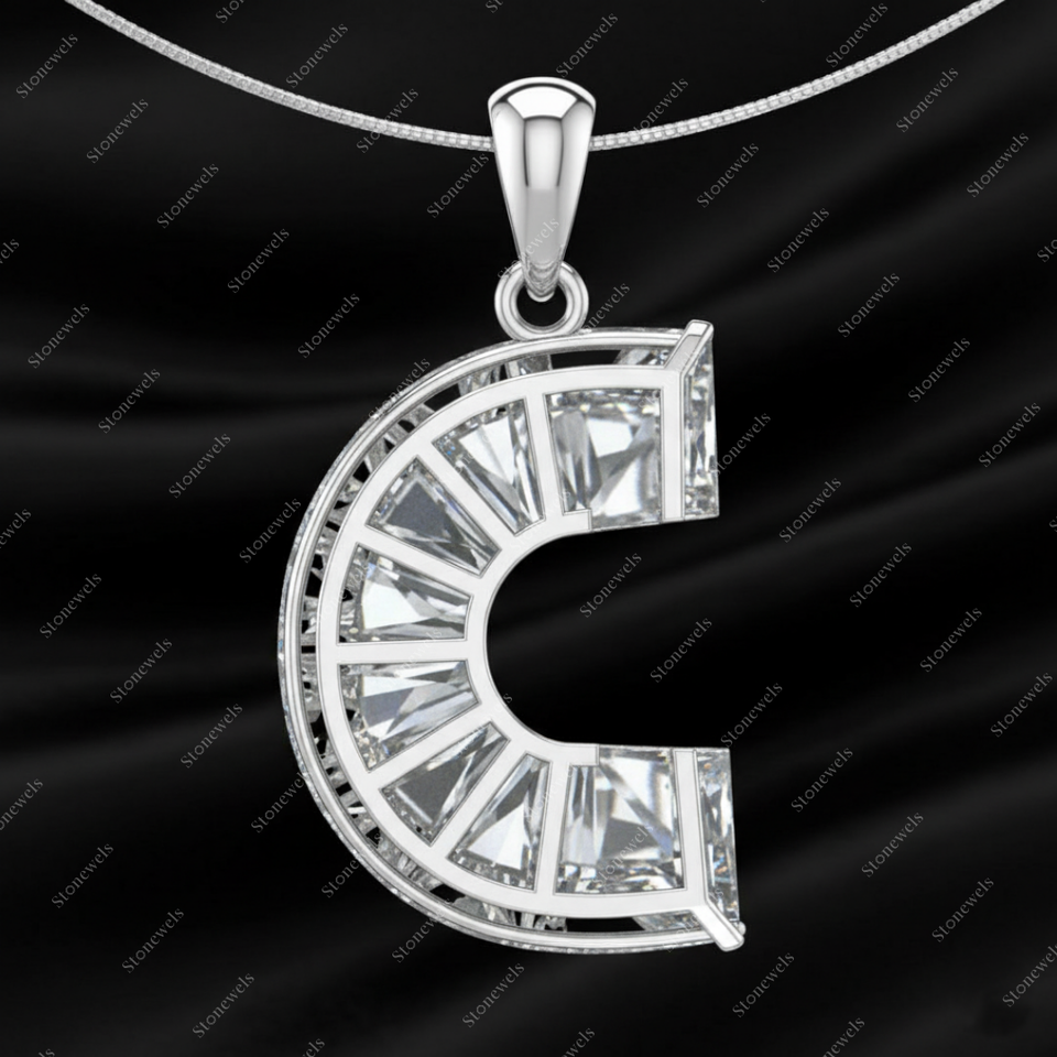 Product Name:Solid Lab Grown Initial Alphabet Letter C Shape Diamond Pendant