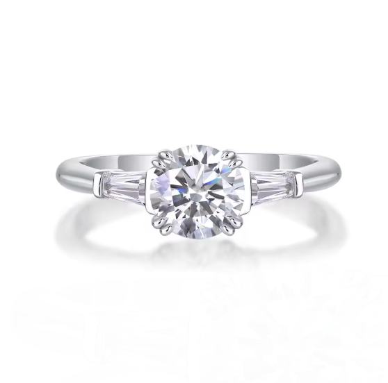 Bagues en diamant naturel GIA avec une coupe excellente et une clarté VS2, diamants ronds et diamants baguette, trois pierres, or massif 14 carats
