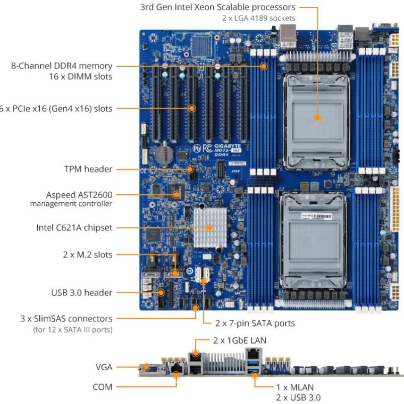 Stockage:3 x connecteurs SlimSAS pour 12 x SATA 6 Gb/s,2 x SATA 6 Gb/s ports
