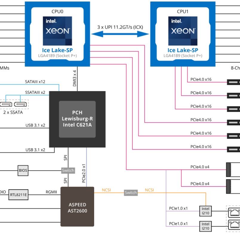 Appui de CPU:Deux processeurs évolutifs Intel Xeon de 3e génération