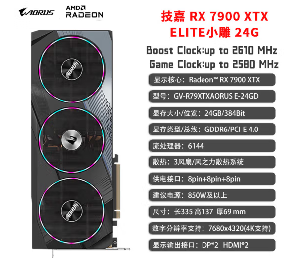 GIGABYTE RADEON RX7900XTX/GRE AMD GPU 4K/2K AI Painting DesignLITE 24G Petite gravure