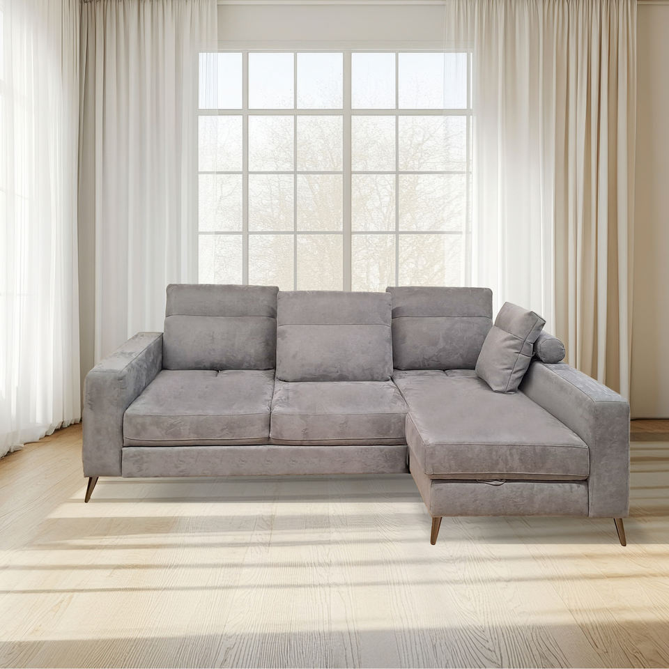 Canapé d'angle GINKO avec dossier coulissant en tissu gris