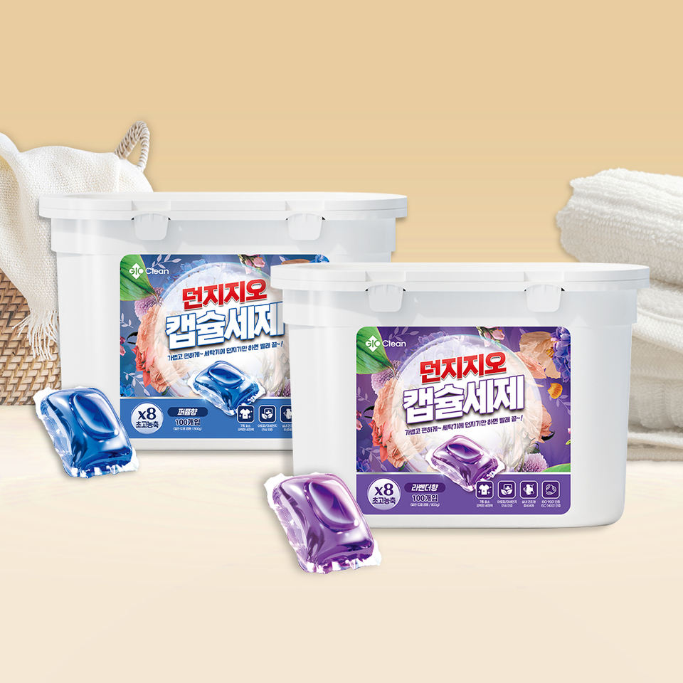 GIO Clean Dunjigio 8g Mini Capsule Detergent 100 Count Lavender Scent 8X Concentrated Enzyme Power Stain Removal