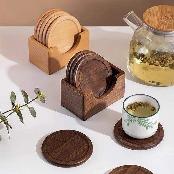 GIVE WOOD ROUND COASTER TAILLE PERSONNALISÉE Fait à la main pour les articles de table et de cuisine Vente en gros de haute qualité du Vietnam