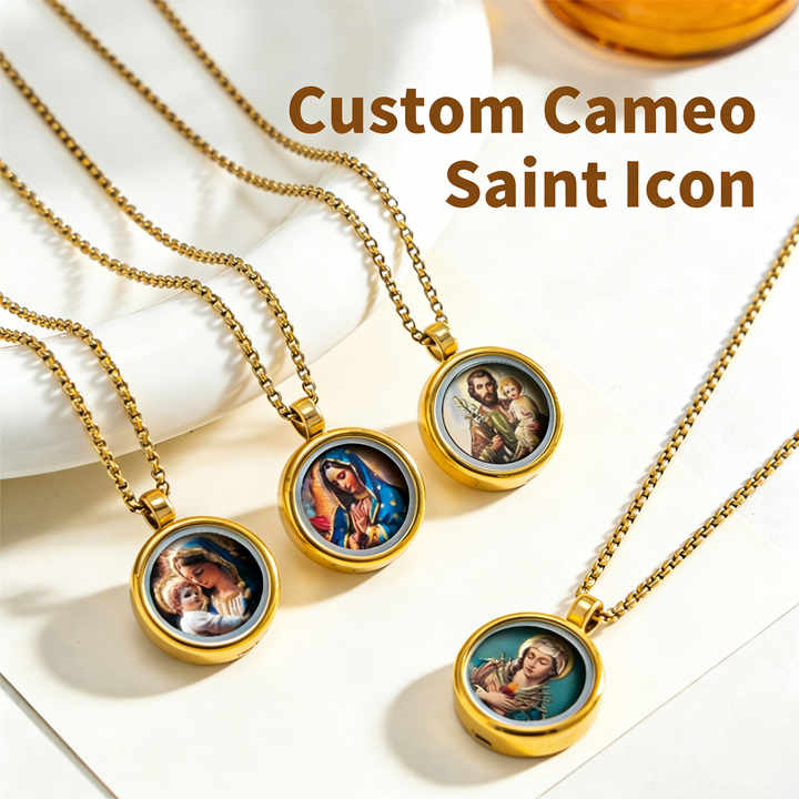 GIVELUCK Collier Pendentif Vierge Marie en Relief 3D Personnalisé, Bijoux Religieux Catholiques Saint Cameo pour Vente en Gros, Bijoux Personnalisés