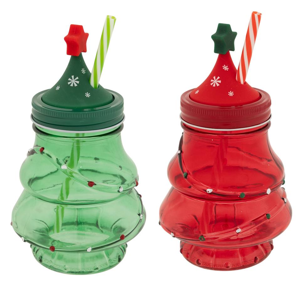 Verre en forme d'arbre avec bouchon/paille 11,1x13,5 cm, assortiment