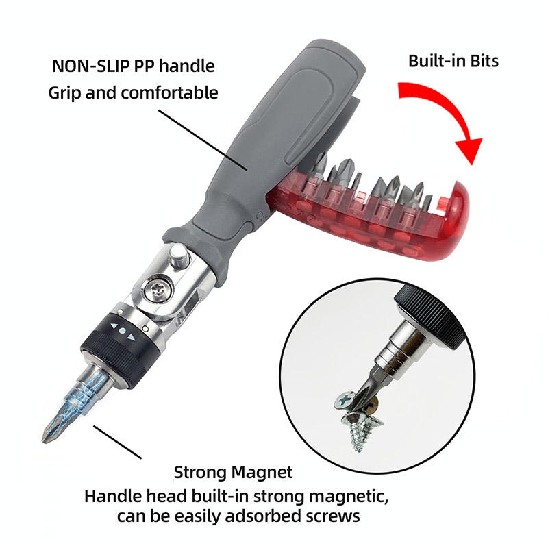 GLEDE Jeu de tournevis à cliquet manuel multifonctions 10 en 1 Offre Spéciale kit d'outils à main avec embout pour les forets de bricolage.