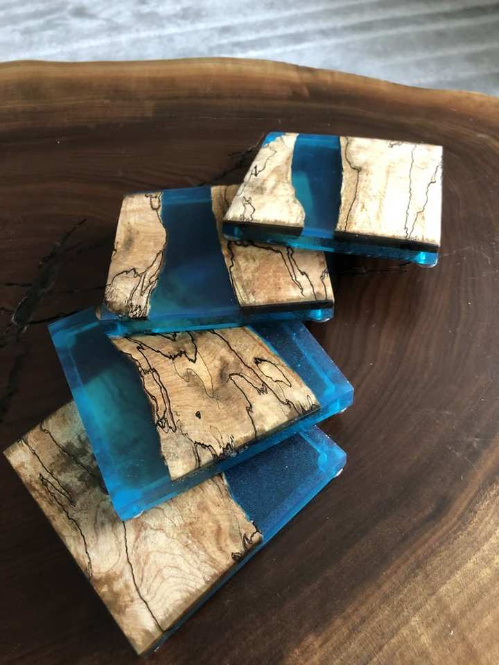 GLITTER Set de sous-verres en résine époxy de qualité avec effet océan Sous-verre décoratif carré rond en résine époxy par Craftsy Home