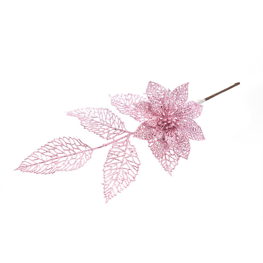 BRANCHES SCINTILLANTES AVEC FEUILLES ET FLEUR ROSE