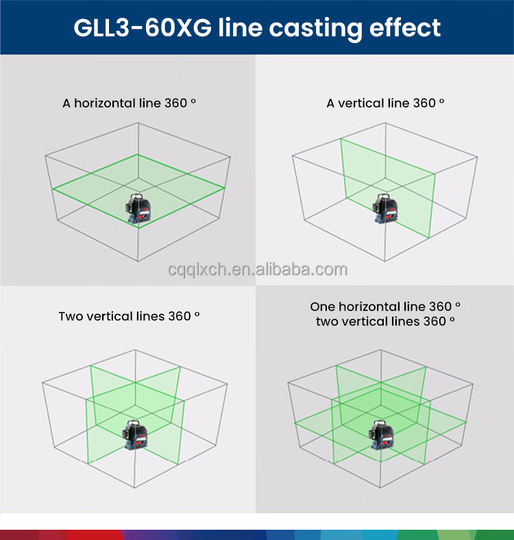 Niveau laser croisé à faisceau vert GLL 3-60 XG 360 degrés, visibilité améliorée, auto-nivelant, protection IP54