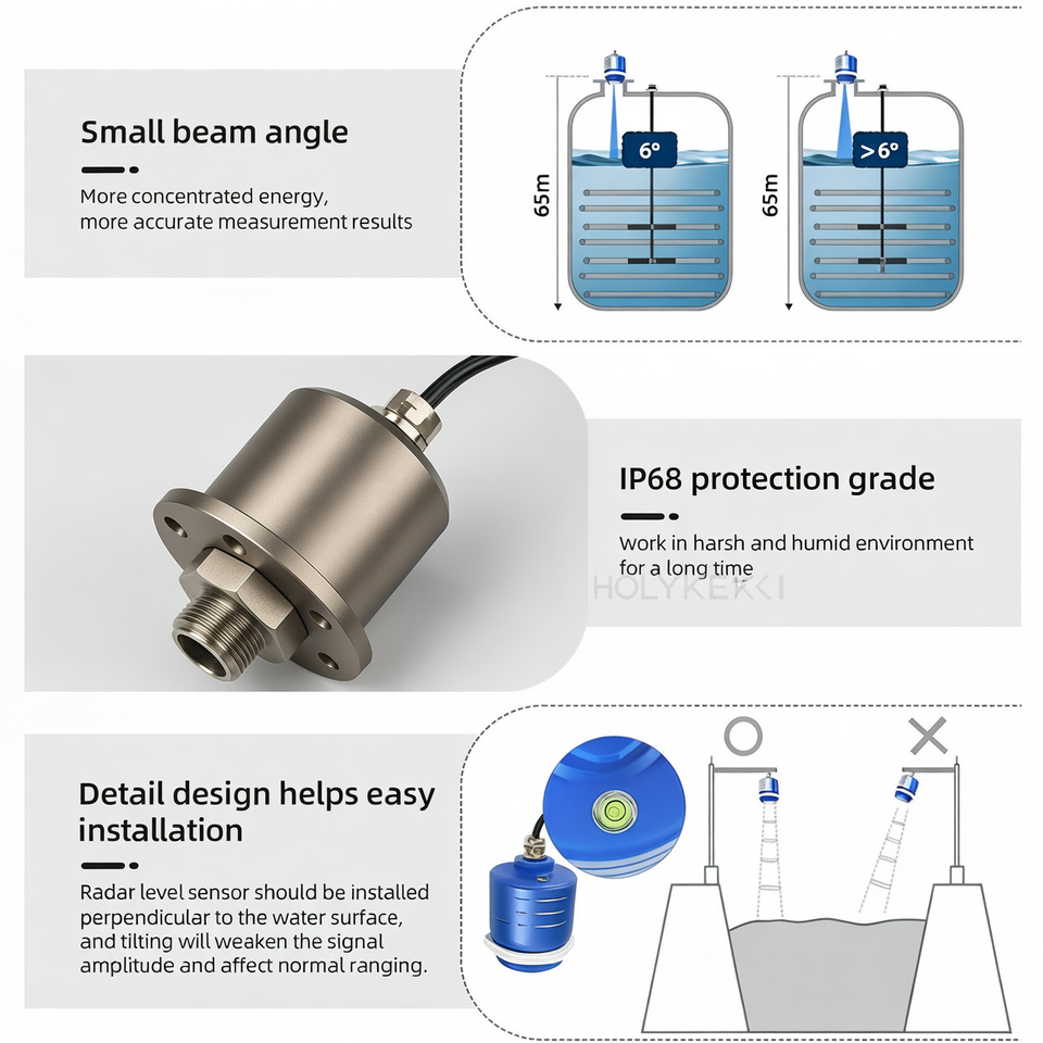 Capteur de niveau radar sans contact GLT744 Bluetooth haute précision 0,1~65m 80G ±1mm 5,2