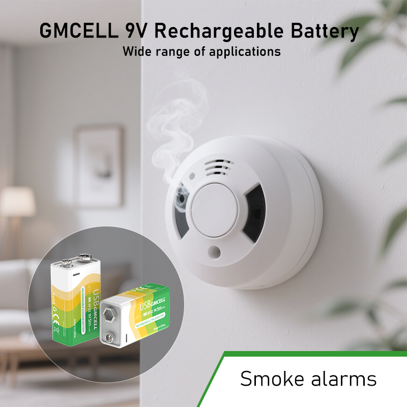 GMCELL 500mAh Type-C 9V USB rechargeable Li-Ion Batteries cylindriques au lithium-ion pour détecteurs de fumée Multimeter-6F22 6lR61
