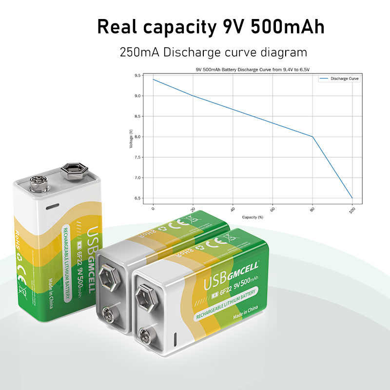 Nom du produit:Batterie rechargeable USB 9V 500mAh