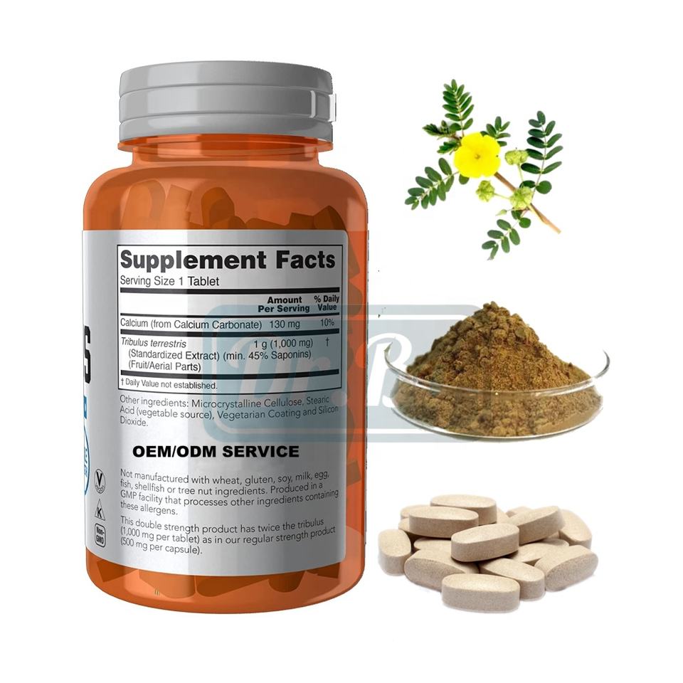 Compléments alimentaires à base de plantes GMP, comprimés d'extrait de Tribulus pour hommes, améliorent l'immunité, non destinés aux adolescents, couleur personnalisée