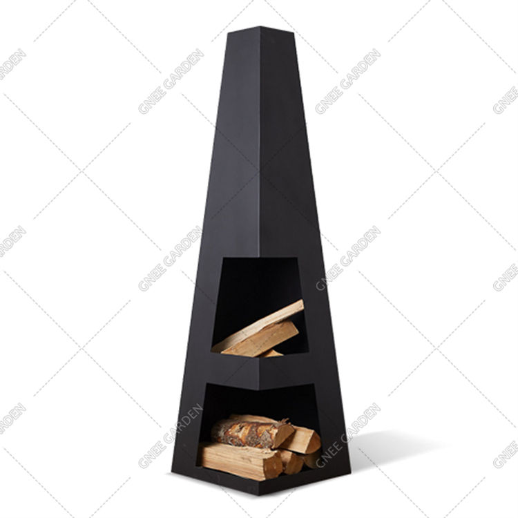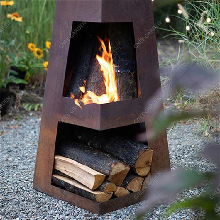 Foyer d'extérieur en acier corten série GN-FP, cheminée moderne au bois avec rangement pour cabine de patio à la maison