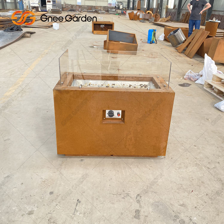 GNEE Table à feu en métal Corten Table à feu au propane