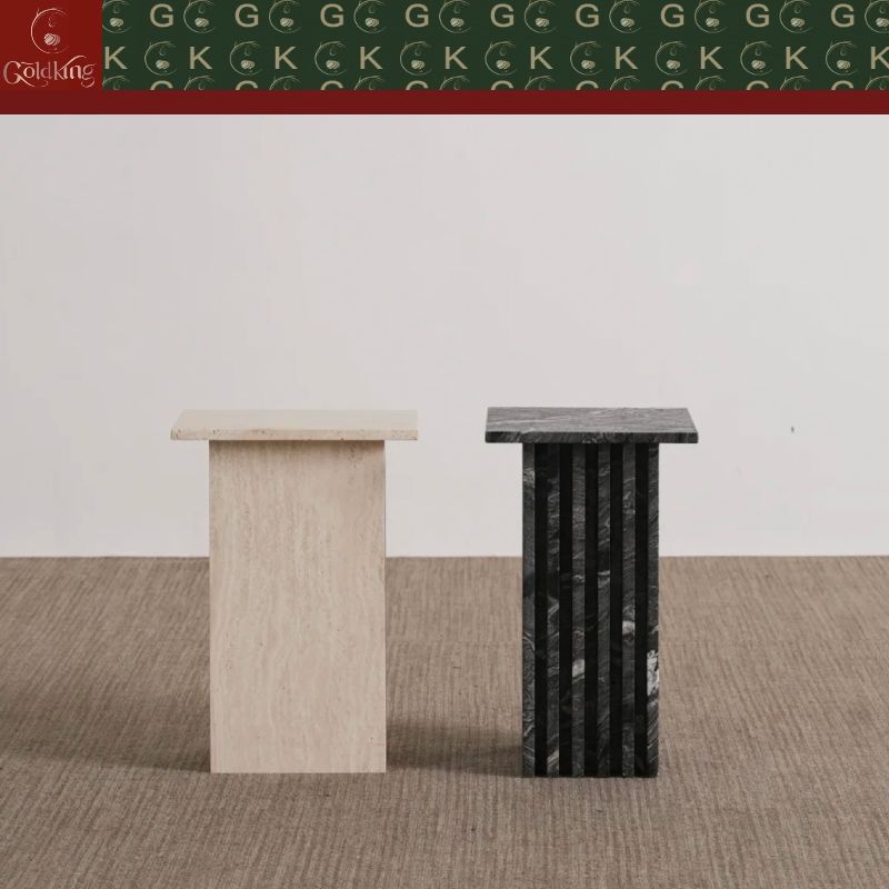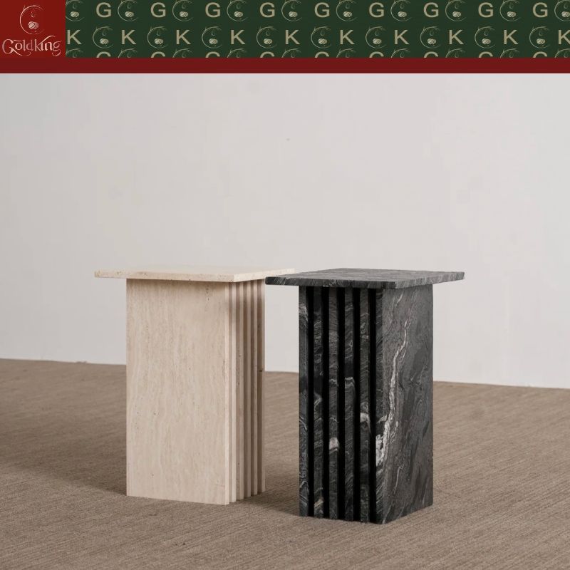 Table d'appoint en marbre GOLDKING, noir et blanc veiné, pour salon, chambre à coucher, design moderne avec rainures verticales polies sur mesure