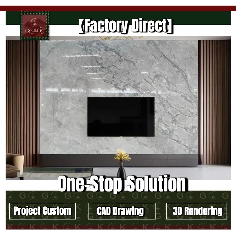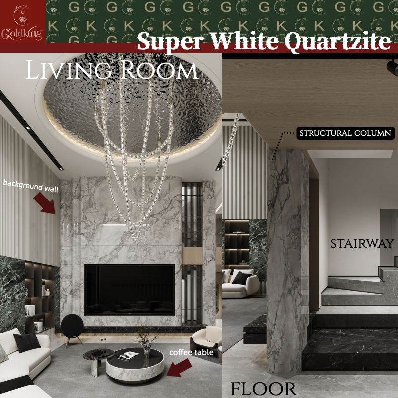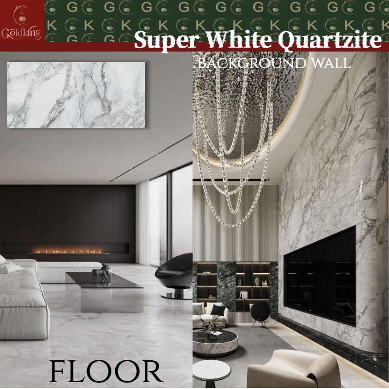 Dalles de quartzite super blanc GOLDKING pour mur TV de salon, découpe sur mesure, approvisionnement en gros, prêt pour les projets, design intérieur