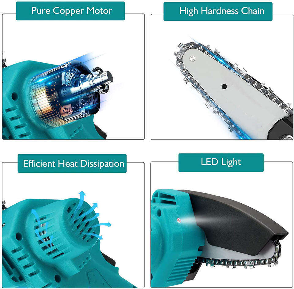 Scie à chaîne électrique sans fil GOLDMOON de 6 pouces, 21 V, pour l'extérieur, garantie de 3 ans, batterie au lithium, outils portables pour l'élagage en jardin