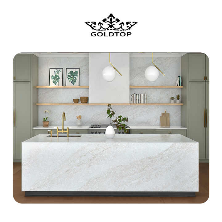Dalles de quartz veiné blanc et or GOLDTOP ODM OEM 6041 Perla Venata pour comptoirs et dessus de vanité modernes d'hôtels