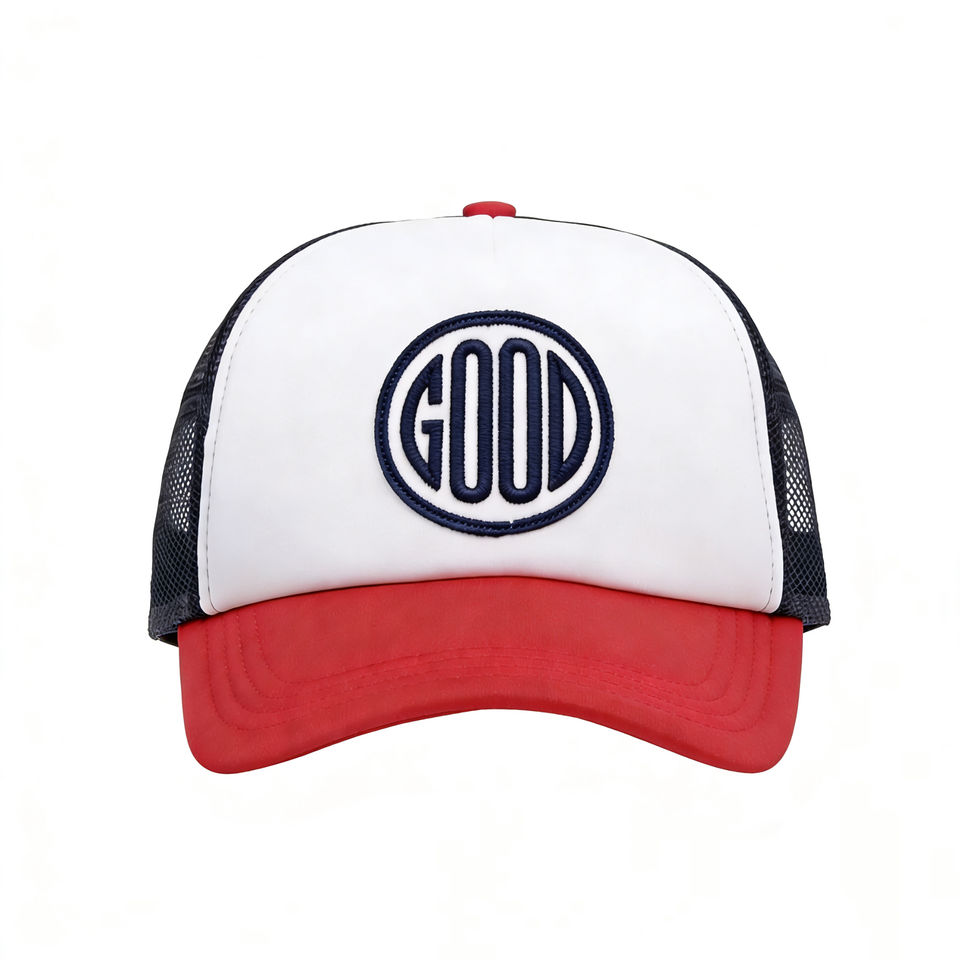 Casquette de camionneur en maille brodée GOOD – Casquette légère, respirante et réglable avec fermeture snapback pour les sports de plein air