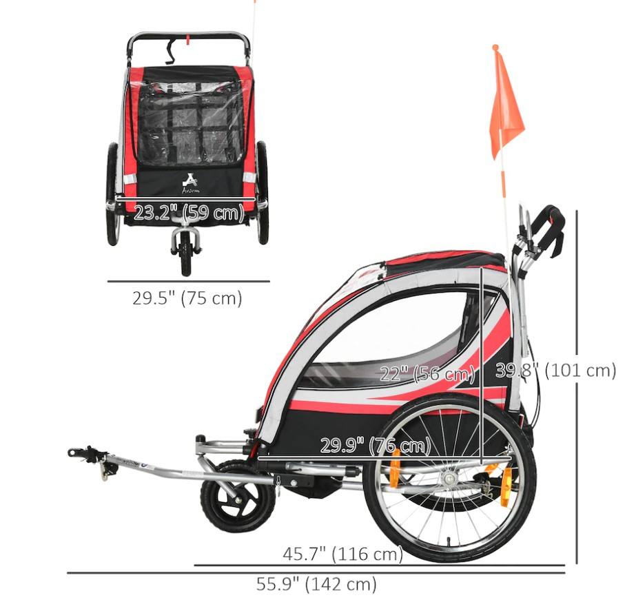 BONNE qualité-Poussettes, marchettes et porte-bébés 2-en-1 Poussette de jogging double pour bébés, remorque de vélo pour enfants et tout-petits