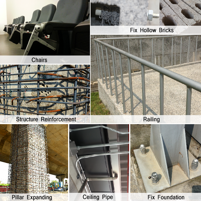 Applications:Diamond drilled holes and deep embedment installations