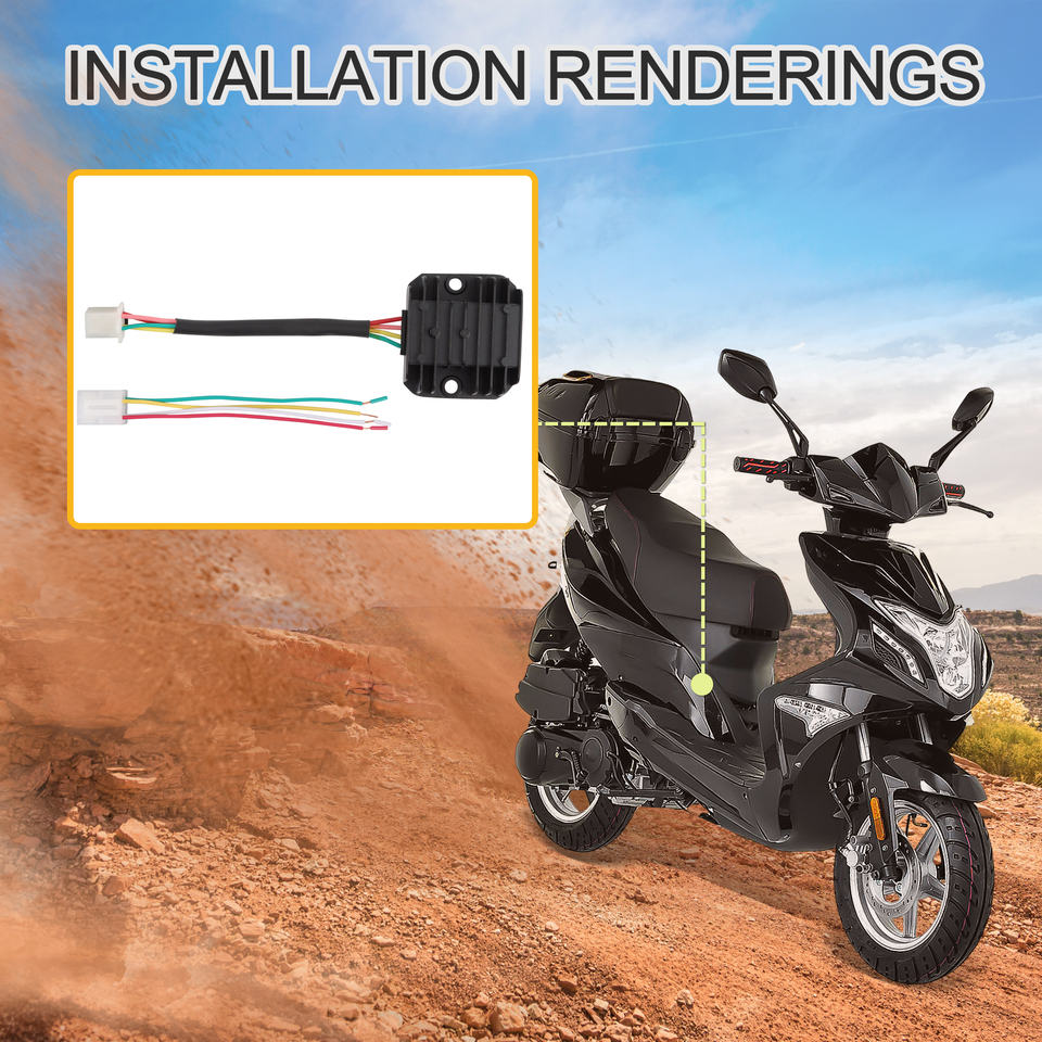 GOOFIT 12V Régulateur de tension pour moto Redresseur 4 fils Demi-onde Remplacement pour GY6 50cc 125cc 150cc Scooter ATV