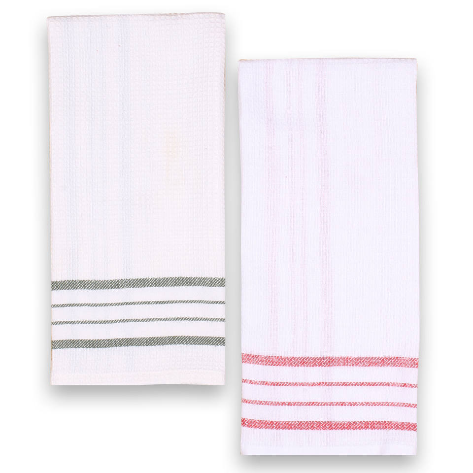 GOTS Certified 100% Cotton Woven Stripe Check Design Kitchen Towel Soft Comfort Quick-Dry Waffle Eco-Friendly Multi-Purpose Use