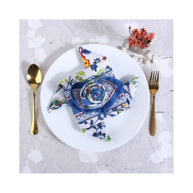 GOTS Certified 18x18in 300TC Cotton Napkins Blue Digital Customized Lattice Pattern Ideal For Sustainable Resort Dining Buyers