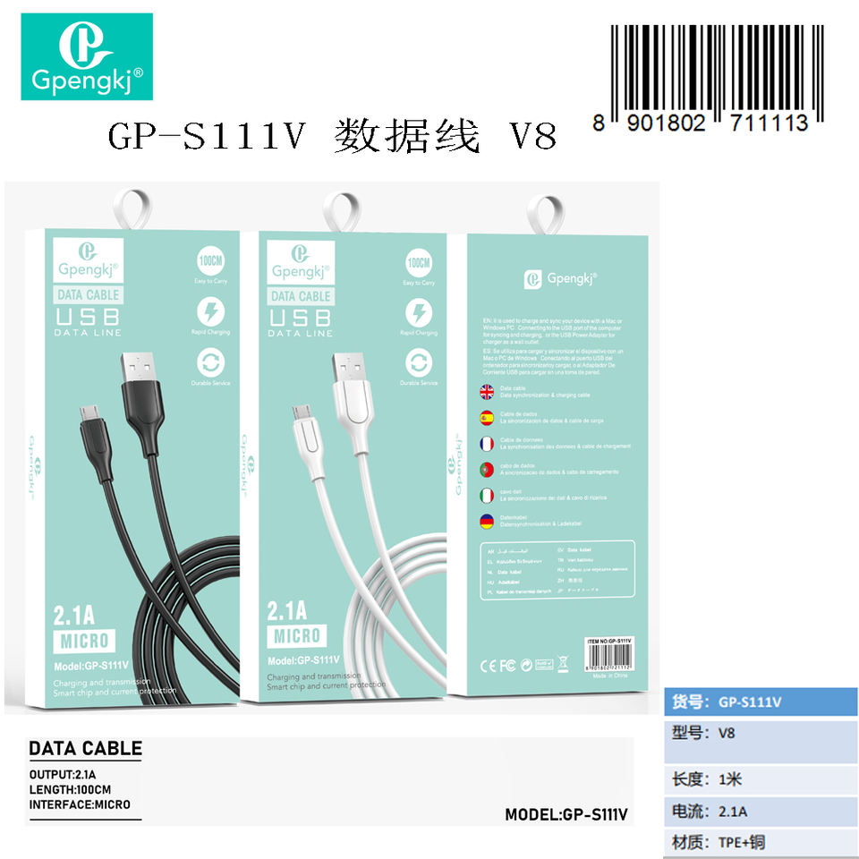 Câble de données USB Gpengkj 1m Micro 2.1a Charge rapide pour téléphone