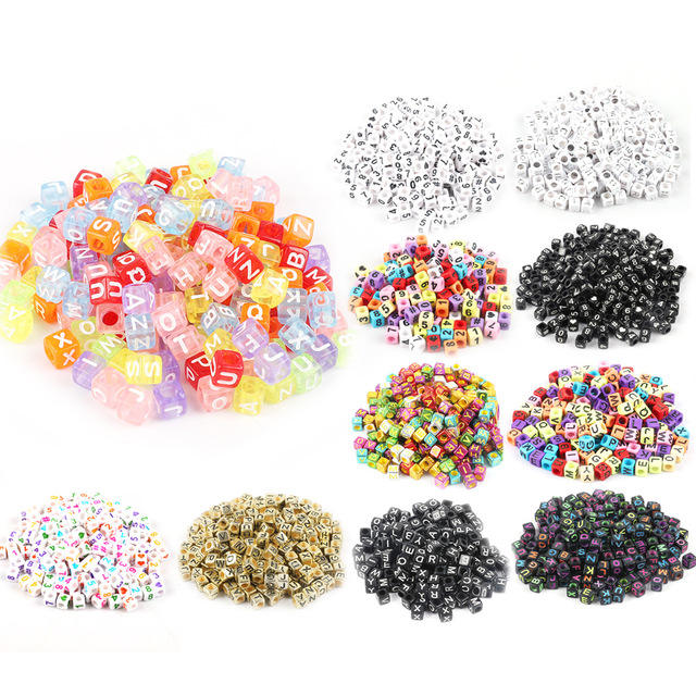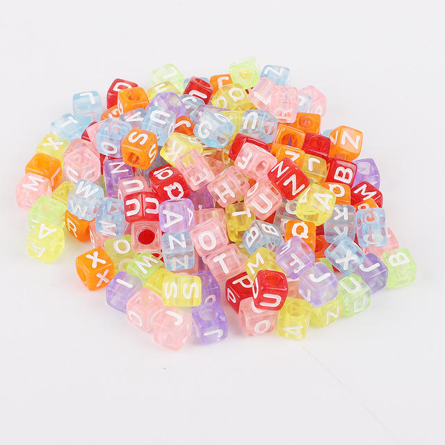 GP0958 en plastique acrylique lettre initiale 6mm 500g A à Z 26 alphabet boîte carrée cube perles pour bijoux BRICOLAGE