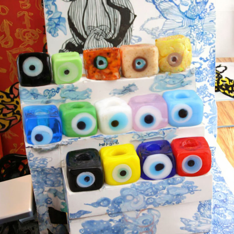 GP0978 HK EXPORTS HK207 Perles entretoises en verre soufflé et cristal, multicolores, à grand trou, motif Yeux Maléfiques, pour la création de bijoux