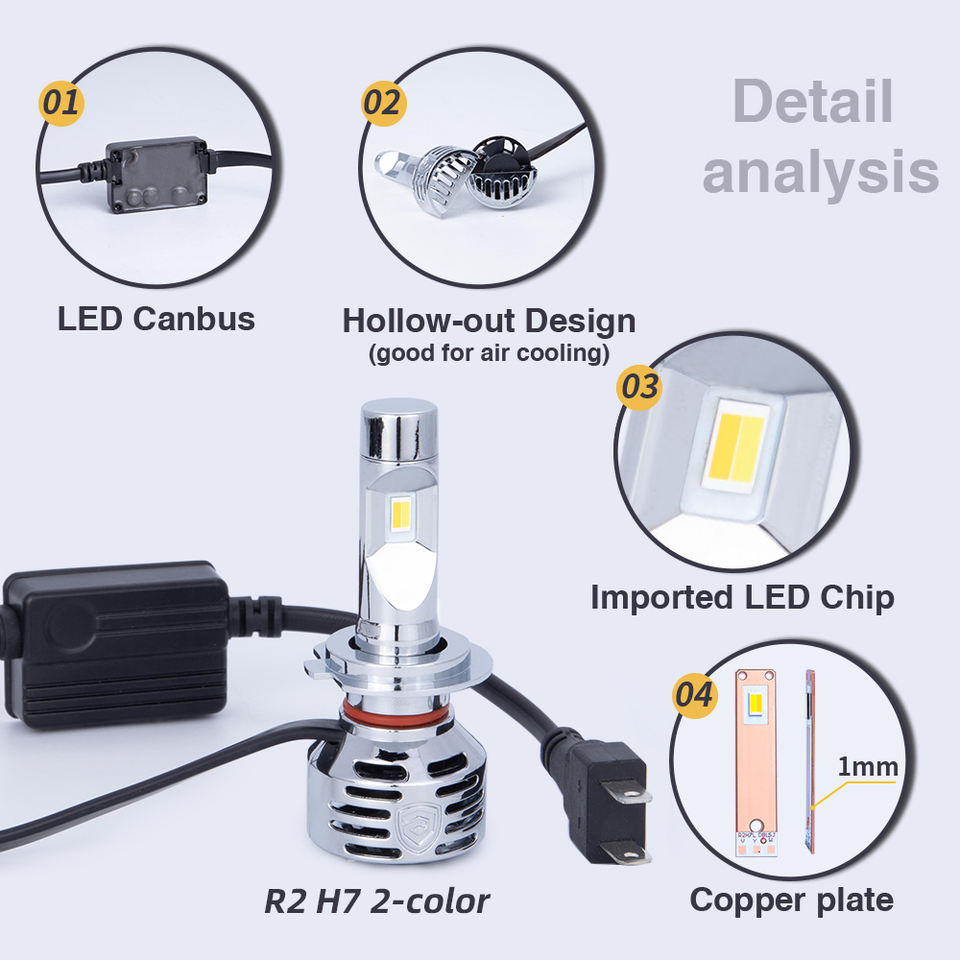 Ampoules de voiture Led GPNE R2, double couleur, blanc jaune 3000k 6000k, phare antibrouillard, 9005 9006 H4 H7 H11, 2 pièces
