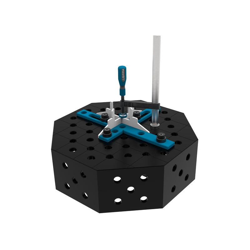 Banc de soudage octogonal GPPH SteelPlus OCT 0.8x0.8m, épaisseur 12mm, trous 16mm sur grille 50x50mm
