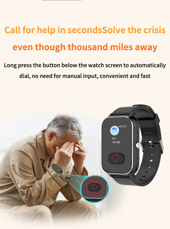Montre intelligente GPS pour personnes âgées Détection des chutes SOS Video Call Tracker 4G Sim Card Fitness Tracker Localisateur de personnes âgées Plastique LBS
