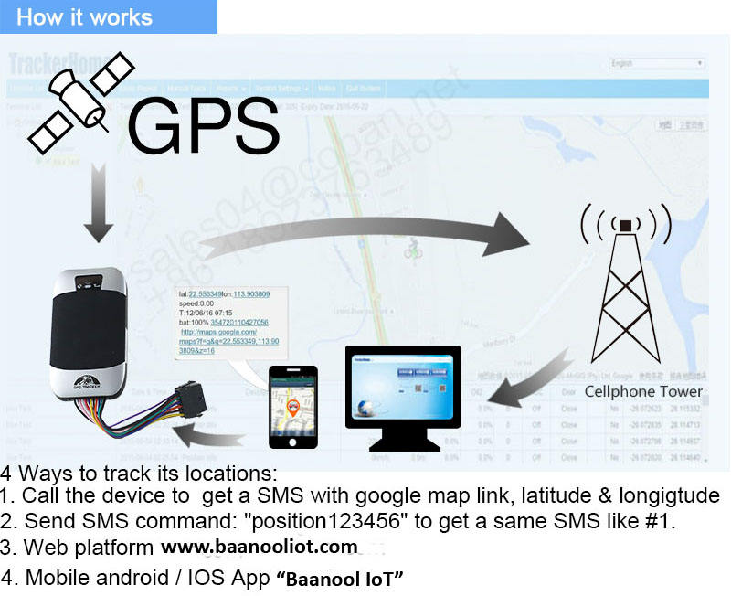 Traceur GPS pour la gestion de flotte, positionnement GSM LBS, applications Android et iOS pour la location de voitures