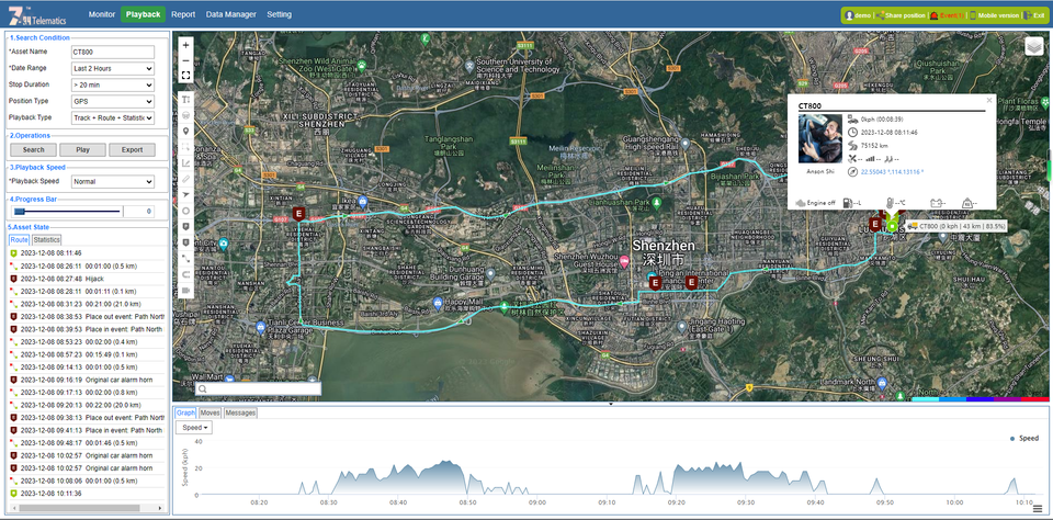 vue de la rue, Détection De CRNA, Géorepérage, 5G Carte Sim, Suivi en temps réel, Playback Histoire, Notification d'alarme, Rapports multiples, Contrôle de commande, Alarme geofence, Gestion des tâches, Carte de google map/bing/boîte de carte/carte openstreet, Support GPS + LBS (station de base cellulaire) positionnement, Compatible avec la plupart des trackers GPS, Gestion des dépenses, Partager la position, Notification push, Rapport par courriel, Réglage du capteur, Réglage de l'événement