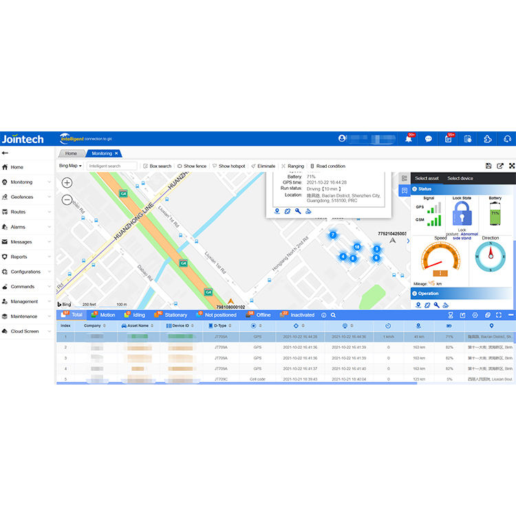 Télécommande, Planification de route, Avertissement de vitesse, Suivi en temps réel, Playback de l'histoire de trajectoire, GeofencingFonction