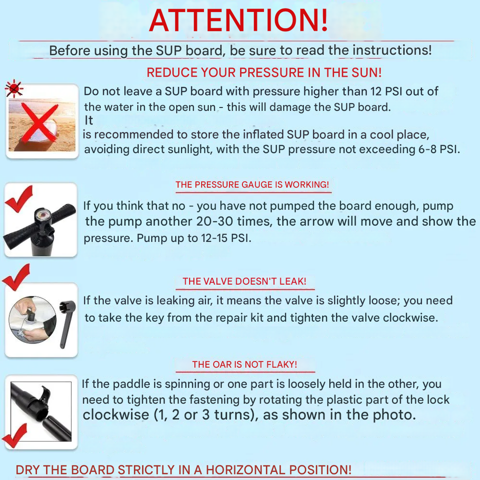 Détails des accessoires d'emballage:Pagaie réglable, pompe à main, aileron, leash, sac à dos