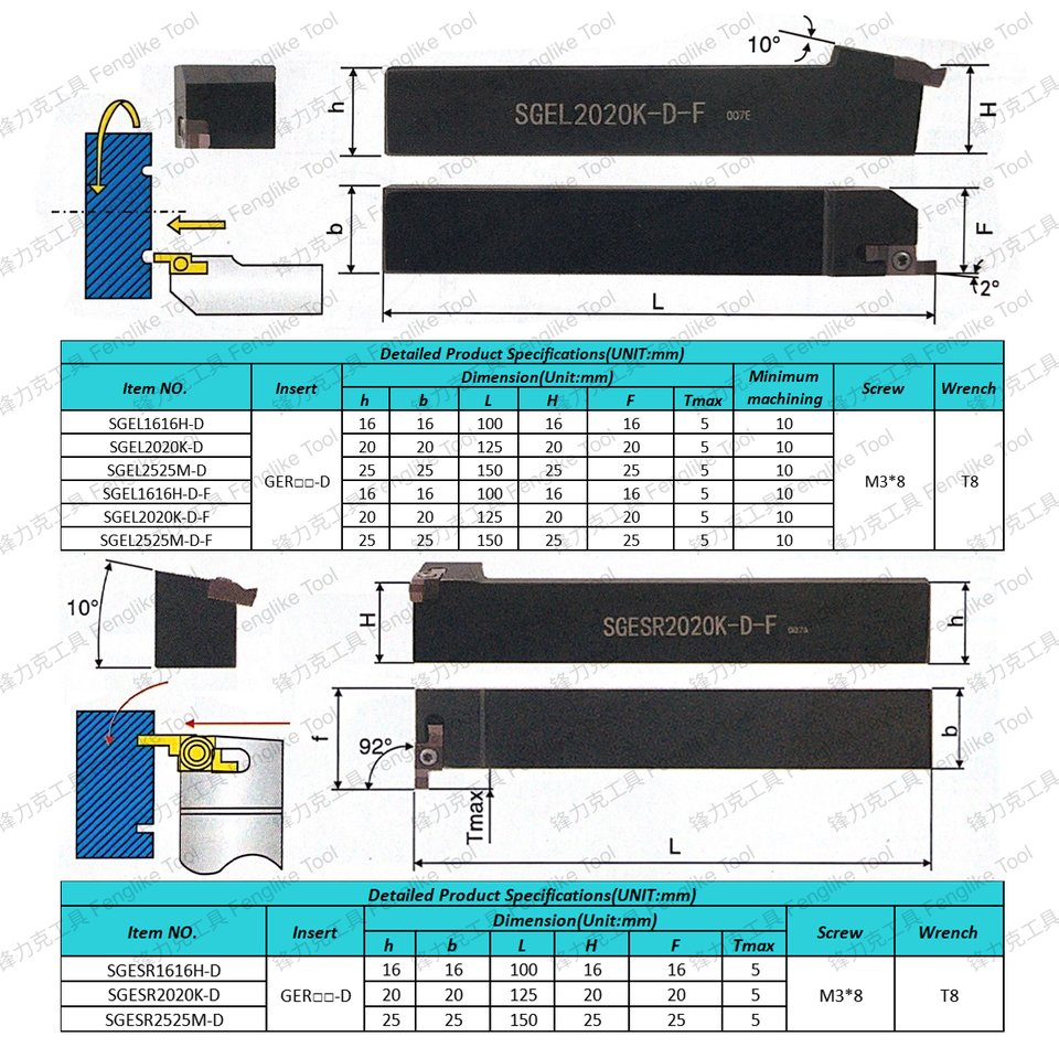 Inserts GR GER SNGR/L & SIGER & SGESR & SGEL Porte-outil de tournage à rainure interne antichoc pour rainure de petit diamètre
