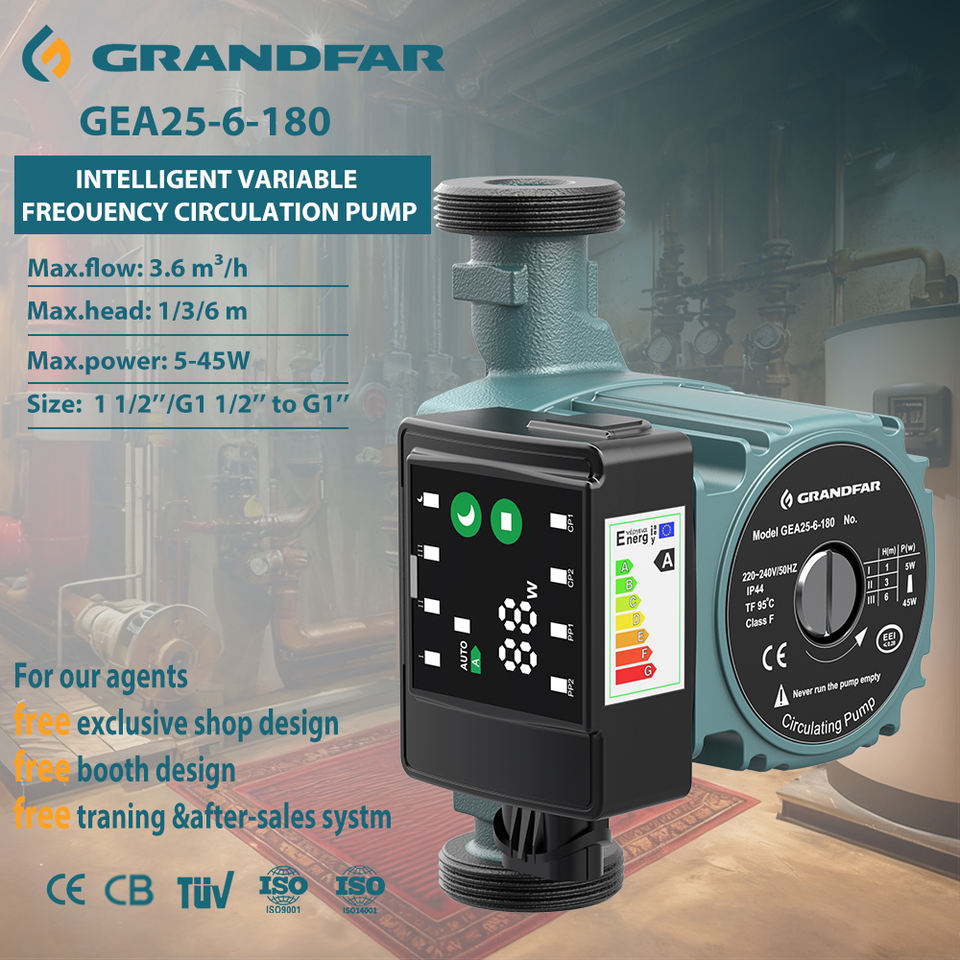 GRANDFAR Pompe de Circulation d'Eau Chaude à Pression Intelligente, Efficace et Multi-Vitesses, de Classe A pour Usage Domestique