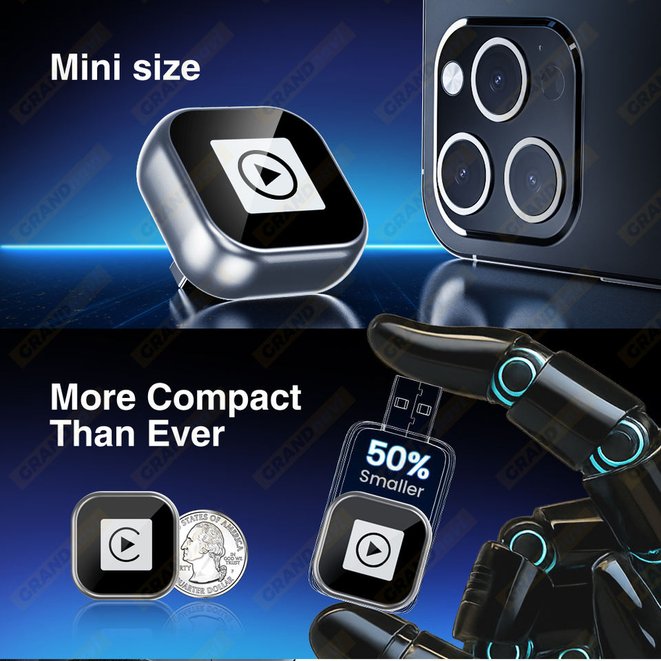 GRANDNAVI USB sans fil Carplay Android Auto 2in1 BT Play Music Googl Map Sir Commande vocale