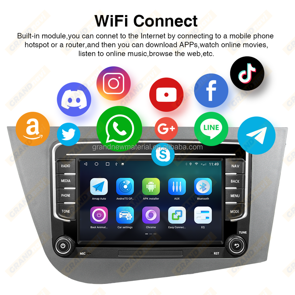 GRANDnavi 9 pouces Android System Car Radio pour Seat Leon 2 Android Car Radio 2005 2012 CarPlay Android Auto GPS Mirror Link