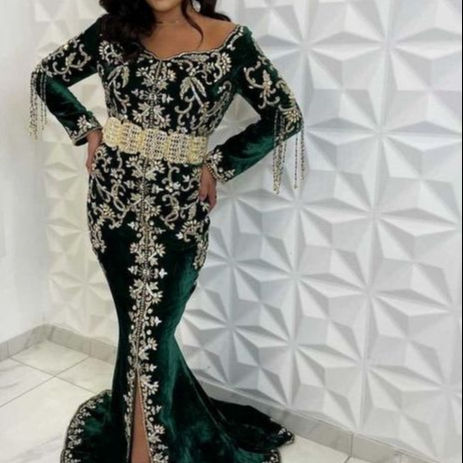 Robe CAFTAN verte élégante avec broderie de dbrillka, perles en verre, en pierre de verre, pour tenue de soirée @ 2022