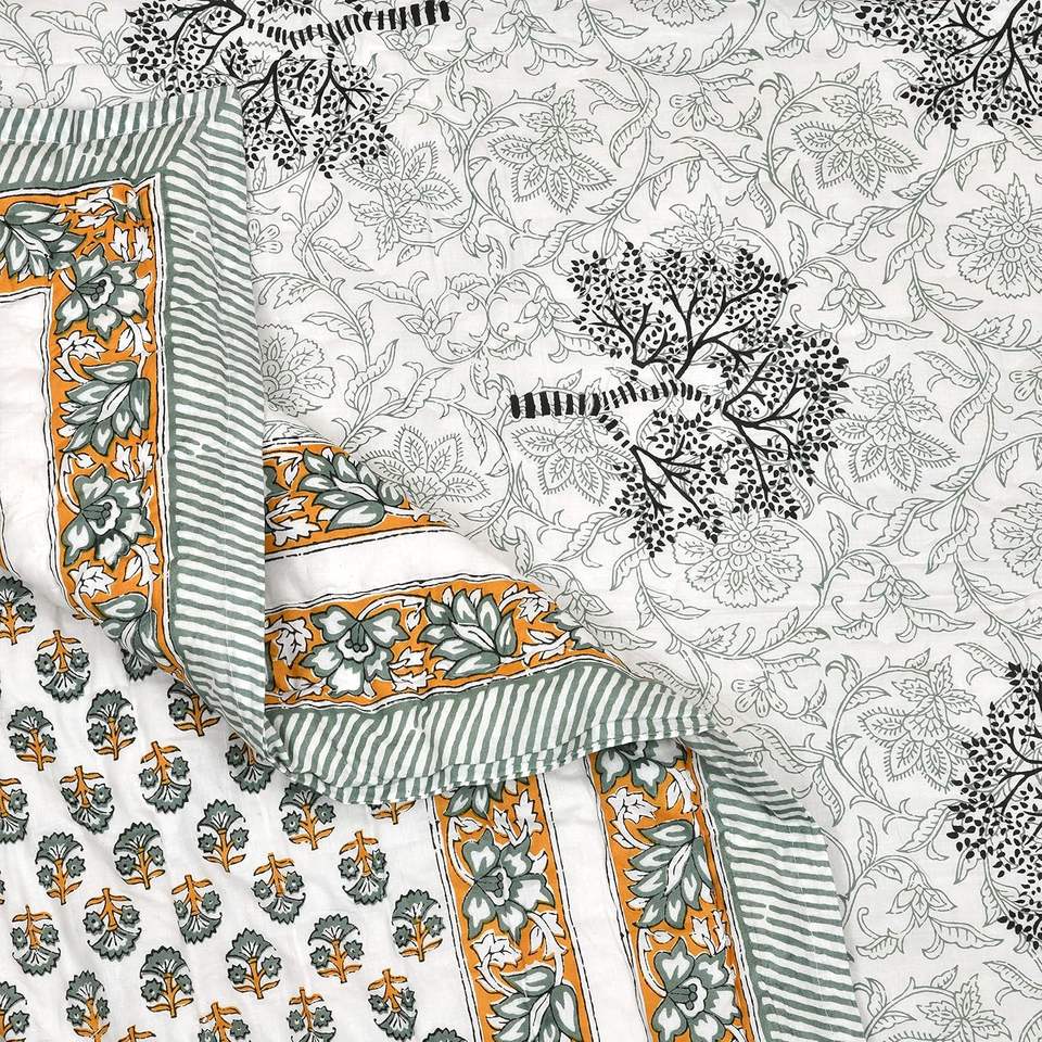 GREEN YELLOW TREE Coton Taille unique Quilt Hand Block Print for Light Winters Meilleure collection de haute qualité Prix de gros