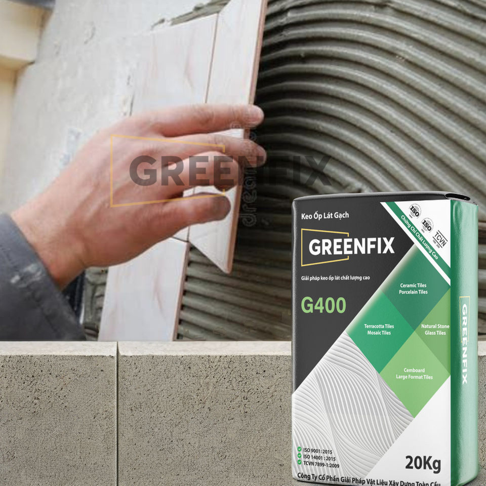 Adhésif pour carrelage à base de ciment GREENFIX C1T, écologique, durable, forte adhérence, sac de 20 kg, usage intérieur, bâtiment au Vietnam
